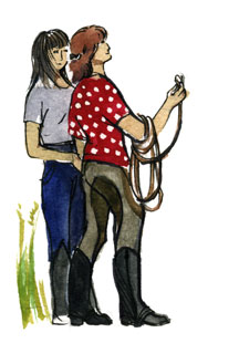 – Ты должна очень внимательно смотреть на него. Лошадь никогда не срывается сразу. Он будет проверять – глазеть по сторонам, натягивать чомбур, обгонять или задерживаться. Если заметить это в самом начале, сюрпризов не будет, – объясняла Мухомор Зануде. – Будешь невнимательной – получишь невоспитанную лошадь – толкающуюся, наступающую на ноги… Хама, одним словом.