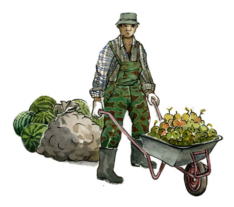 Нагрузив тачку, конюх аккуратно положил сверху несколько крупных арбузов и, поднатужась, закатил всё это богатство в леваду.