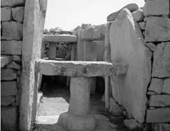 Храмы Мальты. Храмовые комплексы Мальты являются единственными в своем роде в мире. Они были построены в 3600-2500 г.г. до н.э. неизвестными племенами, в них, по-видимому, отправлялся культ богини плодородия и приносились в жертву богам домашние животные. В храмах были найдены каменные фигурки толстых женщин, олицетворявших богинь плодородия. Туда допускались только мужчины, они приводили с собой жертвенное животное и привязывали его у порога храма, а затем ожидали, когда жрецы разрешат им войти. Войдя внутрь, они попадали в центральное помещение, где животные приносились в жертву. В стенах были устроены ниши со статуями богинь, за которыми находились входы в боковое помещение, где сидел оракул и от имени богини делал предсказания. В комнату с алтарями – Святая Святых, допускались только жрецы, служившие богине. Стены храмов имеют небольшой наклон внутрь, они слагались из мегалитов весом до 10-20 т., высеченных из твердого известняка, мягкий известняк тоже использовался в строительстве, стены внутри белились и покрывались орнаментом из красной охры, зачастую в виде спиралей – символа Древа Жизни, а сами храмы были покрыты деревянной или кожаной крышей.