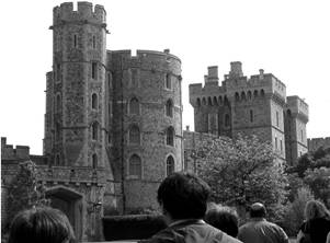 Виндзор – это место, где находишься в непосредственной близости от британского монарха. Соседнее с тем, куда пускают посетителей, крыло дворца занимают частные королевские апартаменты, его середину отмечают две квадратные башни с машикулями и высокими каминными трубами, а углы фланкированы еще двумя квадратными башнями. Первый этаж выделен галереей коробчатых арок с центральной аркой входа, над ним однообразие стен нарушено прямоугольными окнами в глубоких нишах и увенчано открытой галереей с зубчатым парапетом, на которую обращен ряд узких окон.