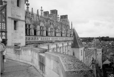 Амбуаз. Возникновение цитадели на этом месте восходит к 9 в., когда семейство графов Анжевен возводит здесь свою крепость. Последний представитель этого рода вошел в заговор против советника Карла VII, после раскрытия которого он был казнен, а его владения конфискованы, так замок стал королевским. Сын Карла VII, Людовик XI, выбирает замок в качестве своей резиденции, здесь родился его сын Карл VIII, и после того, как становится королем, также избирает замок местом пребывания своего двора. В замке происходит венчание Карла VIII и герцогини Анны Бретонской, в результате этого союза к Франции была присоединена последняя крупная область на западе, герцогство Бретань. После первого Итальянского похода Карл VIII решает создать здесь новый замок в подражание увиденным образцам итальянской архитектуры. Замок перестраивается из средневекового в ренессансный, однако Карл VIII погибает во время строительства, ударившись головой о притолоку низкой двери, и дальнейшее превращение замка в образец нового французского стиля происходит уже при его преемниках.