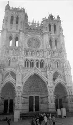 Жемчужиной Амьена, до сих пор впечатляющей путешественников, является Амьенский Нотр-Дам, самый крупный готический собор во Франции. Его строительство было начато после того, как в 1218 г. от удара молнии сгорел романский городской собор, стоявший на этом месте. Незыблемой скалой вырастает над крышами Амьена бесстрастно взирающая своими высокими арками могучая громада кафедрального собора, словно остров вечного покоя в безбрежном океане людской суеты. Первый камень нового собора был заложен уже в 1220 г., и к концу 13 в. собор был в целом закончен, хотя отдельные работы продолжались и в 14 и в 15 веке. Образцом для Амьенского послужил собор в Шартре, однако проект был изменен так, чтобы новый собор мог вместить все городское население того периода, составлявшее 10 тысяч человек.