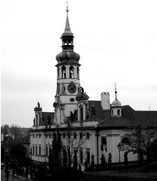 на Лорета, а пражская постройка является ее копией. Отличительной чертой здания является венчающая ее восьмигранная часовая башня под куполом с высоким шпилем.