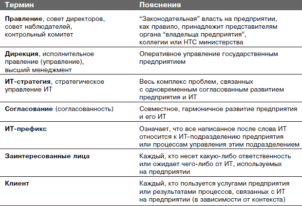 Таблица 1.1. Термины, используемые при описании структуры управления предприятием