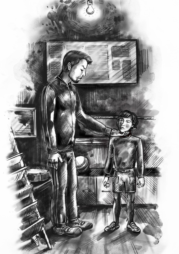 Леонид Владимирович ввернул последний шуруп в светильник и попросил Женьку подать ему лампочку. Поискав, он нашел и подал её учителю. Тот ввернул лампочку в патрон и закрыл её толстым стеклянным плафоном.