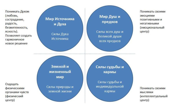 Силы всех душ и Великой души всех предков также представляют астральный мир. Связь со своими предками, родом. Мы можем воспринимать и понимать своими эмоциями: позитивными и негативными (эмоциональный центр).
