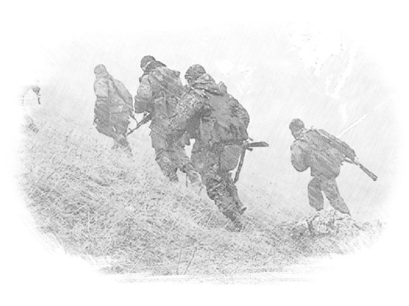 Восход налился кровью над горами.И тучи небо мраком затянули.И слышится как где то рядом с нами,Протяжно песню пули за тянули!