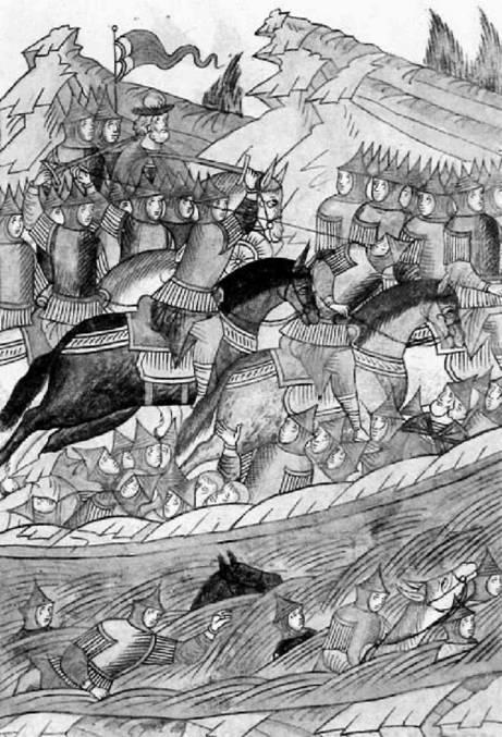 «Через несколько же дней татары переехали на нашу сторону и ударили в кони свои, и искочиша быстро, и нюкнуша гласы своими, и поидоша на грунах и ткнуша на наших.