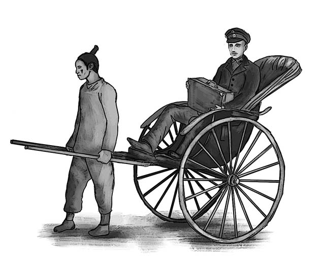 Обождав, покамест пролетка Унгебауэра скроется из виду, Антон Федорович отправился на поиски свободного извозчика. Увы, конного возницы поблизости не случилось, зато имелся достаточно большой выбор из шести рикш. Ни один из скудно одетых мужчин китайской национальности на Горского не поглядел. Все они уткнулись в землю, сжимая в руках оглобли неказистых колясок.