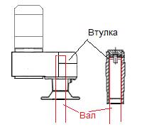 Самая простая схема верхней опоры вала в состоит в креплении вала в плоском мотор-редукторе и использовании подшипников редуктора в качестве верхней опоры вала [1]: