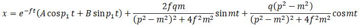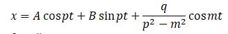 – вынужденные колебания без учета сопротивлений (, в формуле получается, что первый член является вынужденными колебаниями, остальные два члена свободными колебаниями)