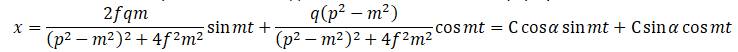 Формула вынужденных колебаний получается из вторых двух членов уравнения упругих колебания после отбрасывания свободных колебаний и замены в формуле