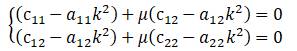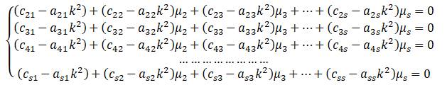 Так как определитель Δk2 = 0, одно из уравнений системы при μ = 1 является следствием других уравнений системы. Последовательно подставляя в уравнения системы все полученные значения k2 получается система уравнений: