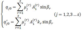 Искомые частота колебаний р и амплитуды μ, возникающие при этой частоте (k = 1,2,3…n), находятся из: