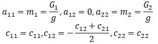 Значения коэффициентов инерции и жесткости подставляются в полученное уравнение частот: