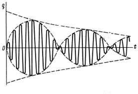 Затухающие биения при отходе от частот, близких к резонансным имеет вид: