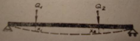 Рассмотрим по методу Релея колебания двухопорного однопролетного вала, нагруженной двумя произвольно приложенными сосредоточенными силами [2,с.76].