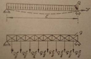 Балка с распределенной нагрузкой условно разбивается на ряд участков с заменой распределенной нагрузки, приходящейся на каждый участок, сосредоточенной силой, приложенной по центру тяжести участка.