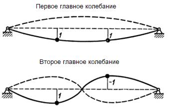 – перемещение системы при колебании имеют ту же форму, что и при статической деформации (сходство формы не означает равенство величин деформации).