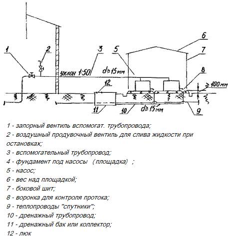 – схема обвязки для пропариваемых и продуваемых насосов:
