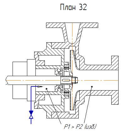 Одинарные торцовые уплотнения не комплектуются системой обвязки как таковой. В сальниковую камеру торцового уплотнения из нагнетательного патрубка насоса по трубопроводу подается жидкость для поддержания давления по плану 21, и с обеспечением циркуляции импеллером по схемам планов из ГОСТ 32600: