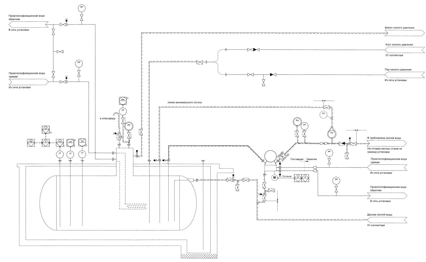 Подробные схемы обвязки с указанием первичных приборов КИПиА как правило разрабатываются в виде внутренних стандартов проектных институтов.