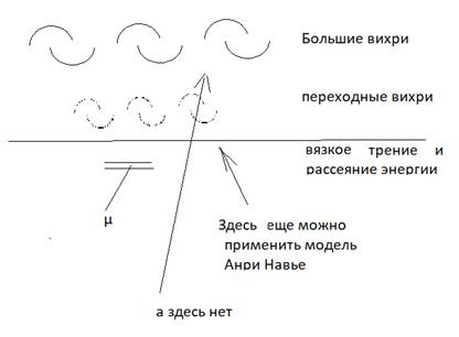 Очевидно, что движение жидкости в пространстве R3 и в любом пространстве, моделью Навье и его представлениями не описывается. Область вокруг точки не превышает колмогоровского масштаба.