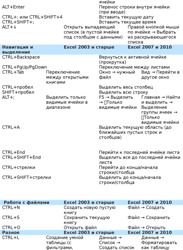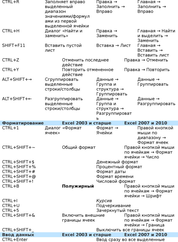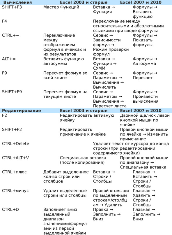 Горячие клавиши в Excel