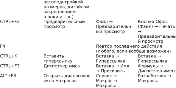 Рисунок 12.2. 57 лучших сочетаний клавиш в Excel