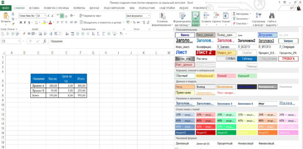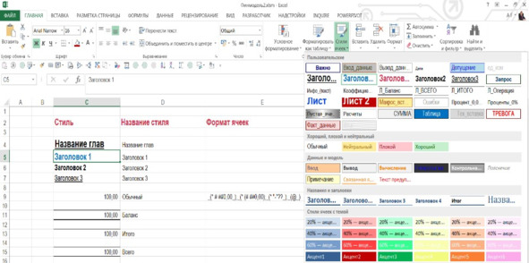 Рисунок 2. Вкладка «Стили ячеек»