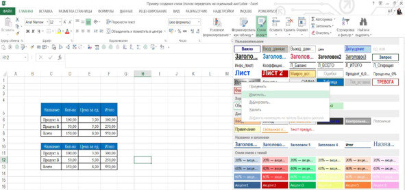 Итак, создаем свой стиль. Нажмите на иконку «Стили ячеек». Во вплывающем окне выберите «Создать стиль ячейки…». В новом окне «Стиль» создайте свой стиль для каждого типа ячеек. Например, Заголовок 1 или ИТОГО.