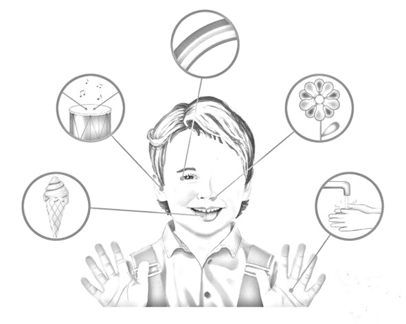 5 органами чувств (реагируя на какие-то внешние вибрационные воздействия, на них извне) в мозг,