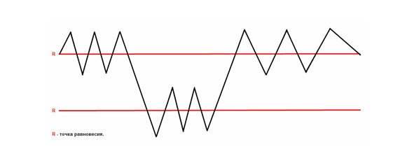 Первая, более жесткая и интенсивная форма на рынках ценных бумаг – это форма справедливого уравновешивания энергии 50/50, визуально выглядит она в виде цикла.