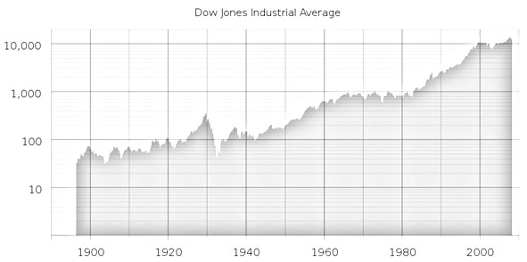Из графика выше видно, что в течение 100 лет индекс стабильно рос.