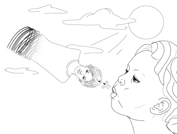 5. Сдувание здоровой части органа (тела). Эта техника обратная технике выдувания. В ней вы должны будете представить, что больная негативная энергия тяжелее энергии вашего тела (на самом деле так и есть, и потому данная техника тоже работает), и просто мысленно сдуть эту здоровую часть (Рисунок 12), останется нездоровая, которую вы можете, к примеру, «растворить» в белом шарике.
