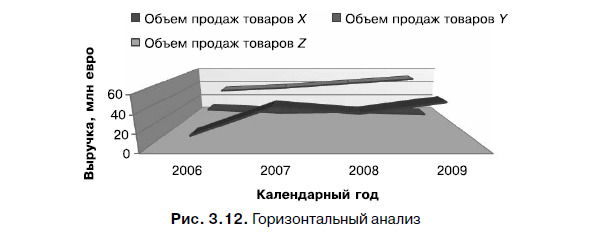 Фактически, применяя горизонтальный анализ, вы можете получить темпы роста соответствующего показателя, что в свою очередь опять-таки даст представление о текущем положении дел в компании или в отрасли в целом (рис. 3.12).