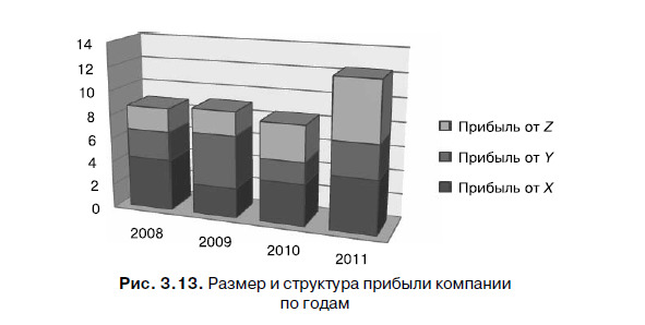 Как нетрудно догадаться, можно проводить горизонтальный анализ вертикального анализа, что позволит лучше понять динамику структурных изменений (рис. 3.13).