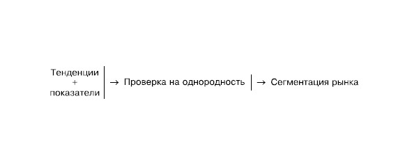 Не исключено, что при проведении анализа вы обнаружите, что та или иная тенденция не является общей для рынка, и фактически его можно разделить на несколько составляющих его групп или сегментов. Более подробно о методике сегментирования мы поговорим в главе «Маркетинговый анализ», здесь же важен сам принцип.