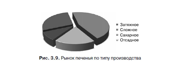 Наиболее удобный способ визуализации сегментов – графический. Обычно сегменты представляют в форме круговой диаграммы, поскольку на ней удобно видеть не только количество сегментов, но и их относительные размеры. Например, ниже показана возможная диаграмма сегментации покупателей печенья по его типу (рис. 3.9).