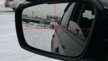 1) Регулируем зеркало так, чтобы задняя часть этой линии оказалась примерно в центре зеркала.