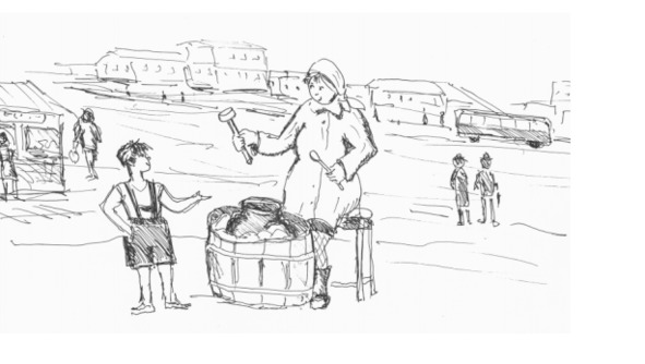 Когда я подрос, мне разрешили гулять. Я целыми днями слонялся с приятелями по улицам, не уходя слишком далеко от дома. Наши бараки стояли на пустыре рядом с туннелем, по которому поезда вылезали из под земли и уползали на отдых в депо. Это была окраина, асфальт был только на проезжей части, а пешеходы ворошили ногами песок. Мы бродим по остановкам и многолюдным пятачкам у ларьков, ищем в песке копейки, покупаем мороженое. Мороженое достают из бидона, опущенного в бочку со льдом, набивают в круглую формочку между двумя вафельными кружочками. Ловким движением продавщица выдавливает из формочки вожделенную таблетку, и вот уже ты счастливый лижешь ее по окружности, нажимая двумя пальцами на вафельные кружочки.