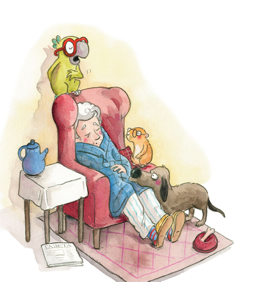 – Подумаешь, всего-то девяносто три! Моей бабушке стукнуло сто двенадцать лет, и она всё ещё была удивительно активной! А наш любимый хозяин теперь только сидит и спит, – ответил попугай.
