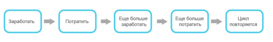 Самая топовая на данный момент цель в жизни человека – деньги. Какие бы пафосные и идеалистические речи не звучали, все сводится к одному – денежное вознаграждение. Действия обычного человека можно изобразить простой схемой.