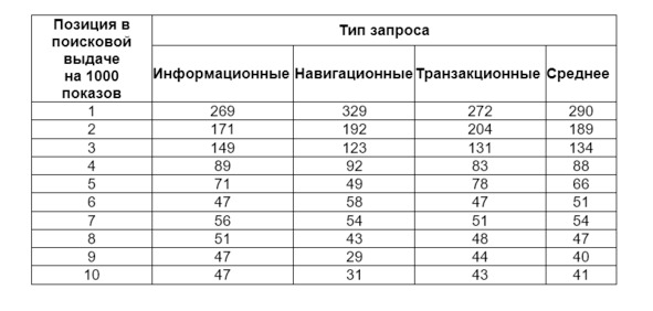 Ниже приведена таблица, взятая из открытых источников, которая показывает сколько было переходов на сайт за тысячу показов.