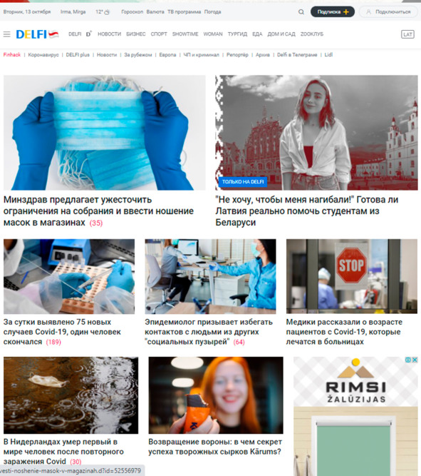 На этой странице пользователь узнает о наиболее важных событиях, происшедших в Латвии и за рубежом.