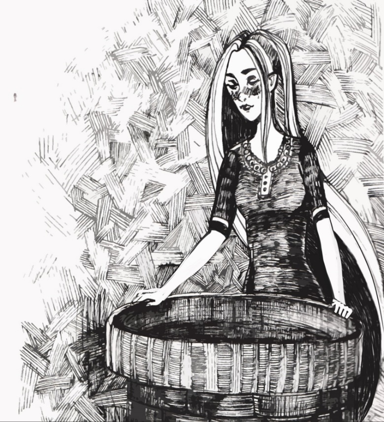 И вот наступил момент, когда воительница ловко перехватила древко копья и одним точным ударом уложила зверя. Колдунья всё это время смотрела на битву с замиранием сердца, потому что почувствовала в этой девушке что-то неуловимо родное и близкое. Воительница тем временем упала на каменный пол без сил и, казалось, даже без дыхания.