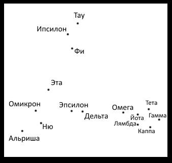 Альриша (альфа Рыб) – двойная звезда: две белые звезды 4,3 и 5,2 величины. Название означает «верёвка». Расстояние 139 световых лет.
