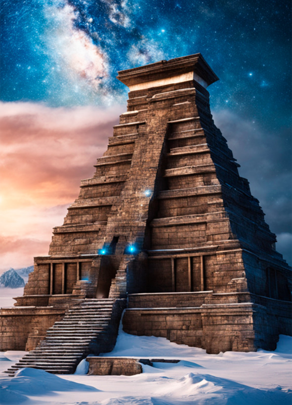 В конце каждой проповеди под потолком храма жрецы разворачивали голографическую картину далёкого будущего конца нашей галактики. Все присутствующие атланты видели, как наша галактика «Млечный путь» сталкивается с проходящей рядом галактикой «Туманность Андромеды», из-за чего получился процесс слияния двух галактик, возникли столкновения и взрывы звёзд, и, конце концов, две гигантские чёрные дыры в центрах галактик слились в одну сверхмощную, которая частично поглотит в грядущем материю обеих галактик. Проявленный мир двух галактик вновь перейдёт в непроявленное состояние, чтобы материя смогла снова зародиться из первозданного хаоса через миллиарды лет.