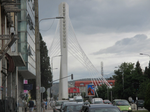 Утром второго дня, 10 июля, я снова начал с посещения автобусной станции, чтобы посмотреть, куда можно поехать. Я уже почти остановил выбор на Петровце на 11.20, как вдруг мой взгляд упал на высветившуюся надпись «Sarajevo 13.35». Поскольку в списке стран экс-Югославии, которые я хотел бы теперь посетить, Босния и Герцеговина шла на первом месте, я не мог упустить такой блестящий шанс. Купив билет, я всю первую половину дня провёл в исследовании центра Подгорицы. От отеля «Европа» до центра – сущие пустяки. Первое, что бросилось в глаза, когда я вышел к историческому центру города – Сахат-кула, старая каменная башня-часовня XVIII века на другой стороне дороги. Чуть дальше пройдя по узкой улочке старого города, я вышел на небольшой пятачок открытого пространства, на котором гордо возвышалась мечеть Осман-Агича – ровесница башни. Вернувшись на площадь, где и расположена башня, я пошёл дальше в сторону дворца спорта и на первом повороте перед ним свернул налево. Передо мной открылась неширокая улочка, а впереди замаячили, словно рёбра скелета какого-то гигантского животного, опоры знаменитого моста Тысячелетия.