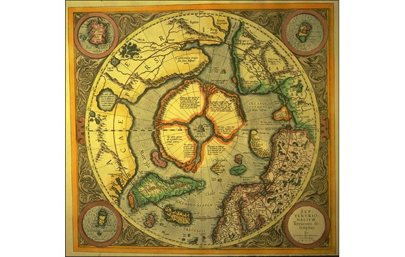 Главное для нас то, что Сказы содержат сведения, которые прямо говорят о существовании северной земли (это совпадает со сведениями Эзотерического учения), о происшедшей с ней катастрофе и переселении с той земли людей на материк. Обращает на себя внимание упоминание горы Меру, сведения о которой имеются в легендах разных народов. В частности, в ведийской литературе, где отмечается, что пришедший к индийцам народ и ставший создателем нового индийского общества, жил в полуночной стране, на севере. Пришедший к индийцам народ назывался ариями, что можно соотнести с названием Оразской земли Сказов: Оразская земля – Орази5 – Арази – Ари – Арии. По Сказу однозначно видно, что Русы-Орази переселились с северной земли, и руководил ими легендарный Сварог, который стал одним из главных богов у ведических народов. Абсолютно все документальные источники белых народов указывают, что изначально люди появились на материке, находившемся на Севере, который в разных источниках называется по-разному: Арктида, Сиверия, Арияна и т. д. Изображение очертаний этого континента, состоящего из четырёх больших островов, сохранилось на стене одной из пирамид в Гизе. В 1595 году карта с изображением этих островов была опубликована Рудольфом – сыном Герхарда Меркатора (Рис. 1).